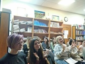 Также на вечере прозвучал рассказ студентки 1 курса специальности "Литературное творчество" Кристины Соломыкиной "Детство на родине" в исполнении Татьяны Гаранчук. Поддержать молодого автора пришли одногруппники и студенты 3 курса, проявляющие большой интерес к литературным событиям в Твери.
