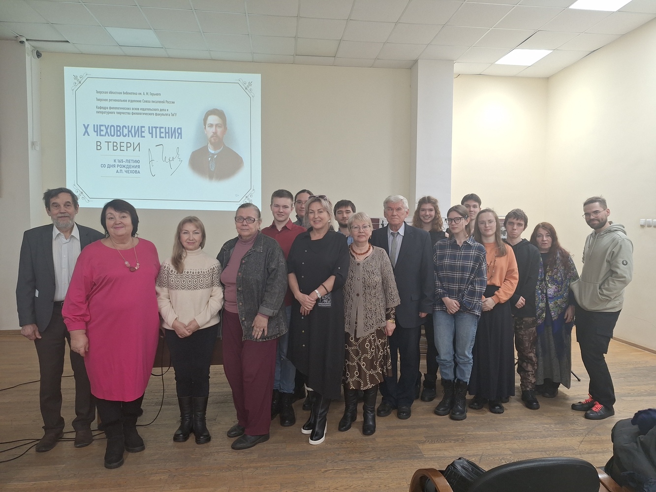 27 ноября 2025 года состоялись традиционные юбилейные “X Чеховские чтения”, посвященные 165-летнему юбилею А.П. Чехова. Конференция была организована кафедрой филологических основ издательского дела и литературного творчества филологического факультета Тверского государственного университета и Тверским отделением Союза писателей России при поддержке Тверской областной библиотеки им. А.М. Горького.